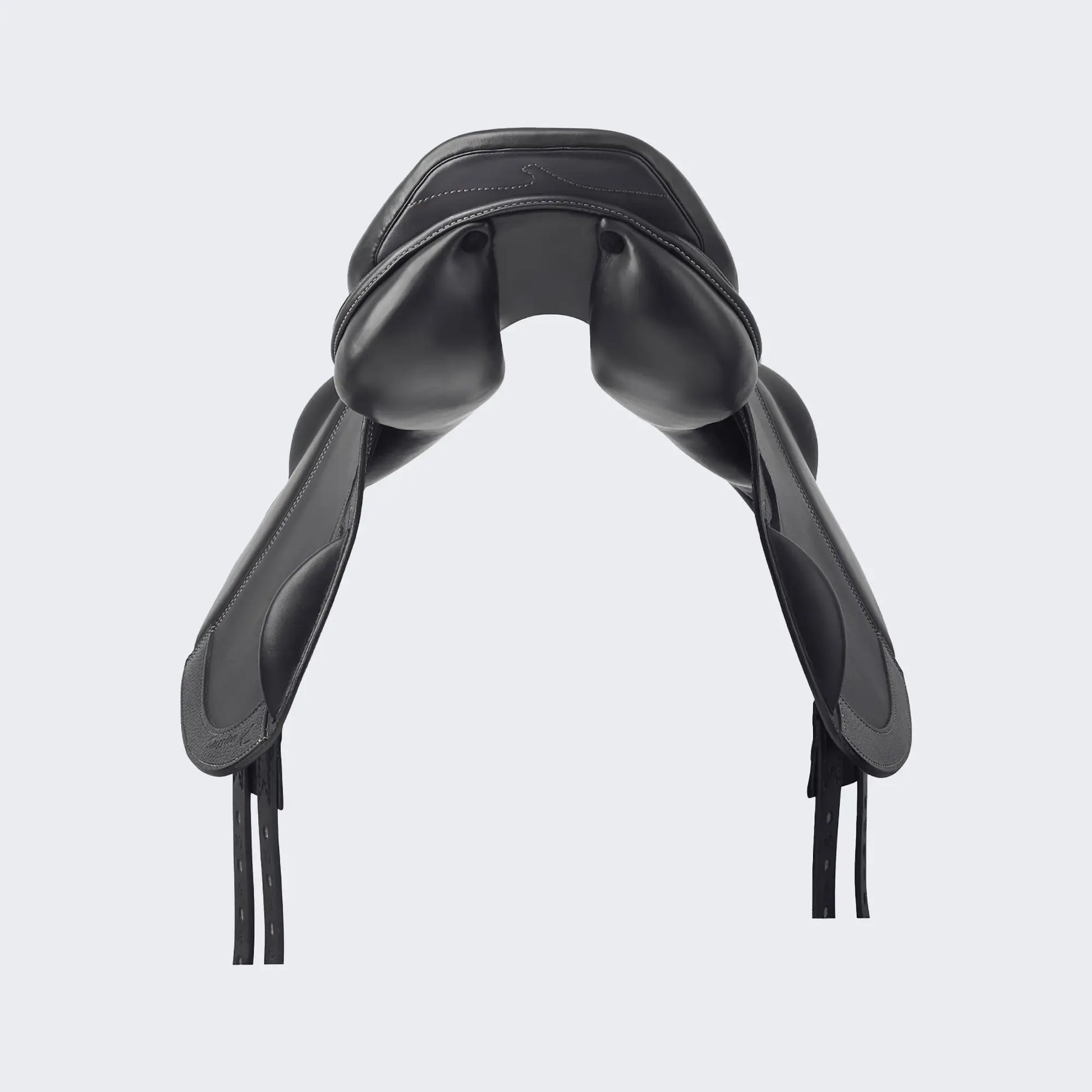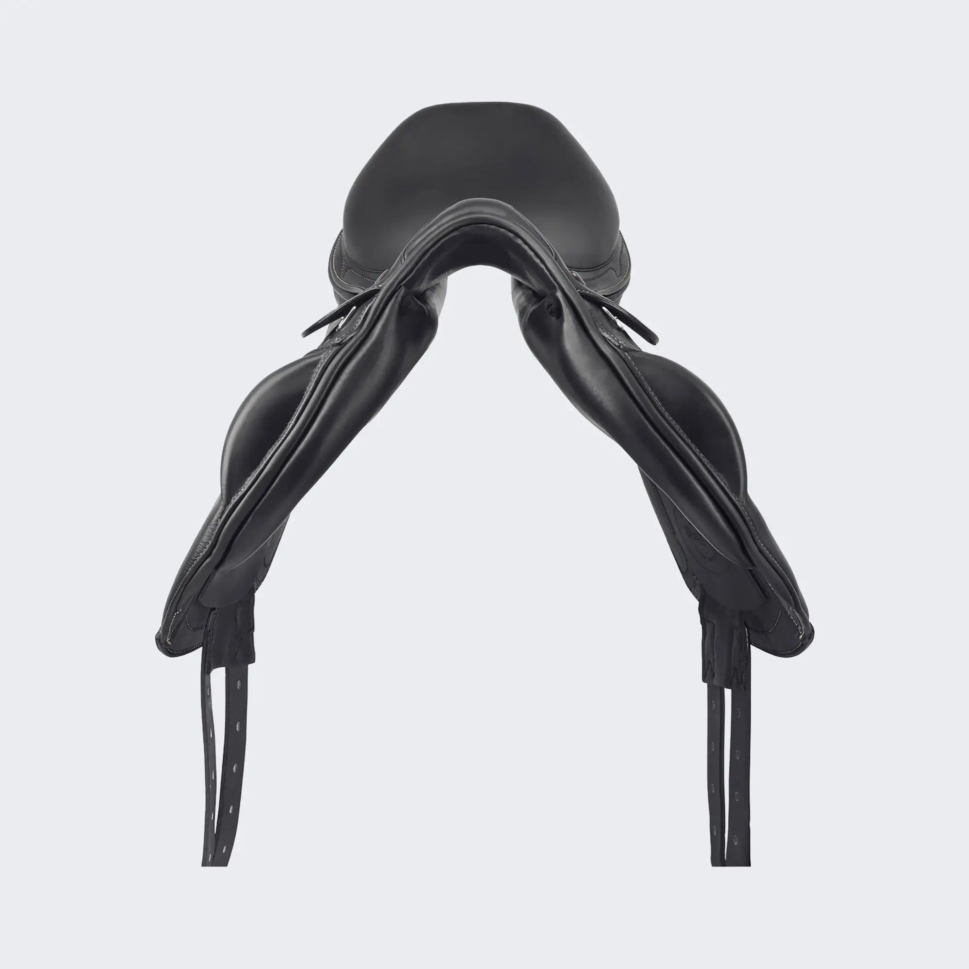 A beautiful saddle with its elegant white stitching lines. This saddle represents excellent value for money. Slightly broader seat but still with a narrow twist. This saddle is perfect for smaller rider. Very close contact panel with flat contact area suits a wide variety of horse morphologies.